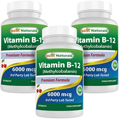 Best Naturals Vitamin B 12 as Methylcobalamin (Methyl B12), 6000 mcg 120 Sublingual Tablets (120 Count (Pack of 3))