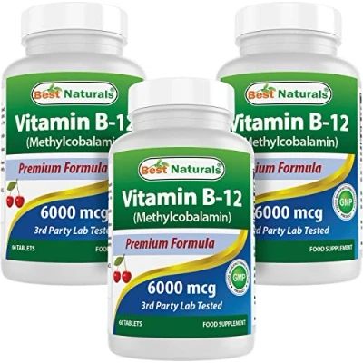 Best Naturals Vitamin B 12 as Methylcobalamin (Methyl B12), 6000 mcg 60 Sublingual Tablets (60 Count (Pack of 3))