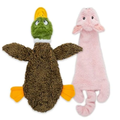 Best Pet Supplies 2 in 1 Stuffless Squeaky Dog Toys with Soft, Durable Fabric for Small, Medium, and Large Pets, No Stuffing Indoor Play, Supports Active Biting Play 1Wild Duck, Pig, Small
