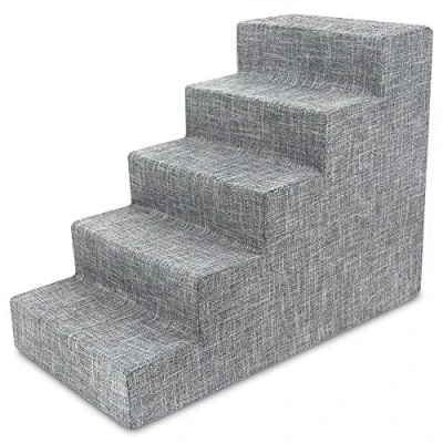 Best Pet Supplies Dog Stairs for Small Dogs & Cats, Foam Steps Portable Ramp Couch Sofa and High Bed Non Slip Balanced Indoor Step Support, Paw Safe No Assembly Ash Gray Linen, 5