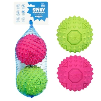 DURABLE DESIGN FOR AGGRESSIVE CHEWERS: Constructed from premium rubber, these durable dog toys keep them busy, providing long-lasting fun for your pet DOG TOY INTERACTION WITH SQUEAKER: Each bounce and bite trigger an engaging squeak, stimulating your dog's natural instincts and turning playtime into an exciting and mentally stimulating experience TEXTURED WITH SPIKES FOR DENTAL HEALTH: The spiked surface of these strong dog toys for aggressive chewers massages gums and cleans teeth, promoting better oral hygiene as they enjoy their favorite squeaky ball SAFE AND NON-TOXIC MATERIALS: Made from non-toxic, high-quality rubber, these rubber dog toys for aggressive chewers provide safe playtime and peace of mind IDEAL FOR ACTIVE DOGS: These dog balls promote physical and mental activity, functioning as interactive dog toys for aggressive chewers that love engaging dog toys to keep them busy