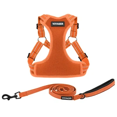 Best Pet Supplies Voyager Adjustable Dog Harness Leash Set with Reflective Stripes for Walking Heavy Duty Full Body No Pull Vest D Ring, Breathable All Weather (Orange), M