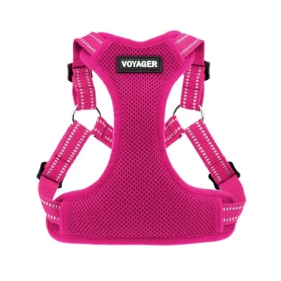 Best Pet Supplies Voyager Adjustable Dog Vest Harness Breathable No Pull for Small, Medium, Large Dogs, Heavy Duty Walking, Jogging, Easy Step In, Reflective Stripes (Fuchsia), L