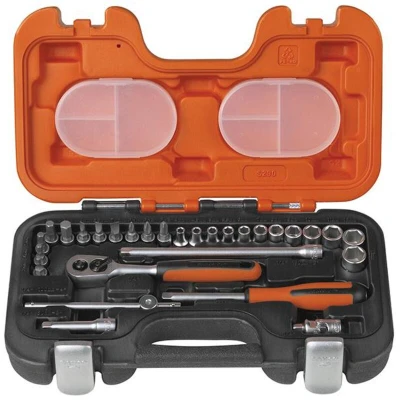 General description Bahco S290 is a comprehensive 29-piece socket set featuring a 1/4 inch square drive, designed for both professional and DIY use. The set includes a variety of sockets and accessories, all housed in a durable plastic case that is resistant to oil and temperature. Technical specifications Material: Chrome vanadium Case material: Oil and temperature resistant polypropylene Contents: 29 pieces Socket sizes: 1/4 inch 6-point dynamic drive sockets - 4, 4.5, 5, 5.5, 6, 7, 8, 9, 10, 11, 12, and 13mm Bit sockets: Phillips 1, 2, 3; Flat 4, 5.5, 7mm; Hex 3, 4, 5, 6, 8mm Extension bars: 1 x 1/4 inch 2 inch, 1 x 1/4 inch 6 inch Other tools: 1 x 1/4 inch sliding T-bar, 1 x 1/4 inch universal joint, 1 x 1/4 inch spinner handle, 1 x ratchet handle (45-teeth) Other information MPN: BAHS290 EAN: 7314153000859