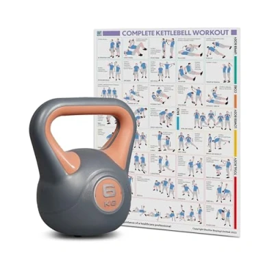 Bestfor Kettlebell Vinyl Coated, Two Tone, Weight Lifting Strength Kettle Bell, for Training, Cardio, Fitness, Muscle Exercise Chart, Body Building, Home Gym Workout 6kg