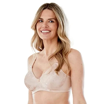 DAILY WEAR. Perfect for almost all clothing and comfortable enough for all-day wear, this simple bra for women is built with lightly-lined cups for gentle shaping, and features a floral jacquard pattern for an elegant finish. ULTIMATE COMFORT. With soft fabric and unpadded, wireless cups, you will barely even notice that you're wearing a bra! LIGHT SUPPORT. This women's bra features an elastic underband and soft, lightly-lined cups for added chest support and control. CUSTOM FIT. Adjustable shoulder straps and back hooks allow you to tighten and loosen the bra to better fit your body. MULTIPLE COLORS & SIZES. Absolutely love this bra? With multiple options to choose from, this everyday bra comes in a variety of colors, from size 34A to plus size 40C.