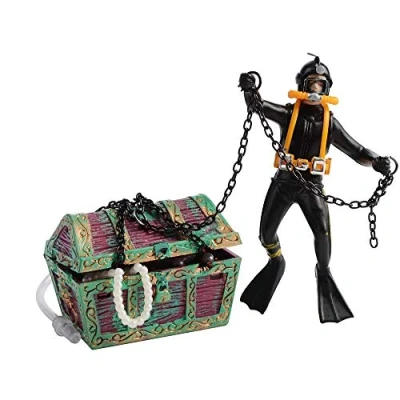 Bestgle Creative Aquarium Ornament Action Undersea Treasure Chest Diver Fish Tank Underwater Decor, Black