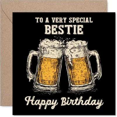 Bestie Birthday Card Bday Beer Happy for from Best Friend Family, 145mm Cheers Greeting Cards