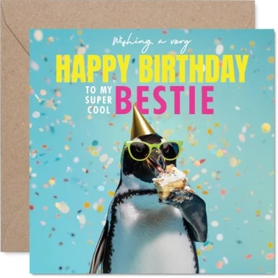 Bestie Birthday Card Bird day Cake Happy for from Best Friend Family, 145mm funny penguin Bday Greeting Cards