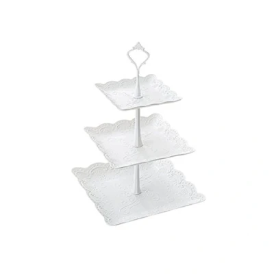 BESTONZON Three Tiers Cake Display Stand and Fruit Plate Party Serving Platter for Birthday Weeding (Square(White))
