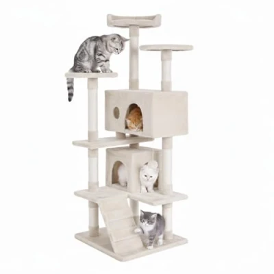 BestPet 139cm Cat Tree Tower for Indoor Cats,Multi Level Furniture Activity Center with Scratching Posts Stand House Condo Funny Toys Kittens Pet Play House,Beige