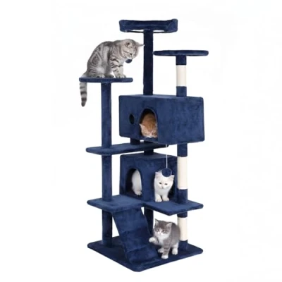 BestPet 139cm Cat Tree Tower for Indoor Cats,Multi Level Furniture Activity Center with Scratching Posts Stand House Condo Funny Toys Kittens Pet Play House,Navy Blue