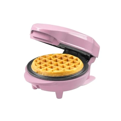 Decorative Mini Waffle Maker for enjoying freshly made mini waffles, and small pancakes (Ø 4 Inch) - Ideal for children or as a small snack in between Also suitable for waffle parties or as a small gift for children's birthdays, Easter, family gatherings, or Christmas Advantages of the non-stick coating: Baking without burning or sticking, easy removal of baked goods, and easier cleaning Automatic temperature control with operation indicator light and readiness display, heat-insulated handle, stable stand with non-slip feet, space-saving design Contents: 1x Bestron Mini Waffle Maker, 550 watts, Material: Plastic/Metal, Dimensions: 15.4 cm x 11.3 cm x 20.3 cm, Weight: 1.06 kg, Color: Pink, Model: AMW500P, Sweet Dreams Collection, Weight: 2.0282528104 pounds, Manufacturer: Bestron Nederland BV