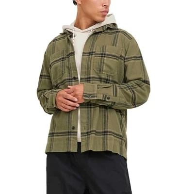 Bestseller A/S Men's Jcospace Logan Flannel Overshirt LS Casual Shirt, Black/Checks:Checks, S