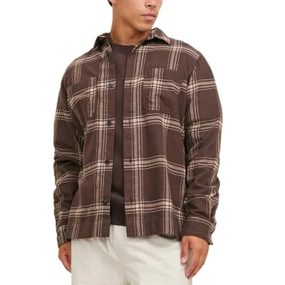 Bestseller A/S Men's Jcospace Logan Flannel Overshirt LS Casual Shirt, Seal Brown/Checks:Checks, M