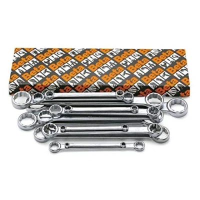 This set contains wrench sizes: 6mm x 7mm 8mm x 9mm 10mm x 11mm 12mm x 13mm 14mm x 15mm 16mm x 17mm 18mm x 19mm 20mm x 22mm With double flat ring ends The heads are thinner than combination and offset ring wrenches Chrome plated