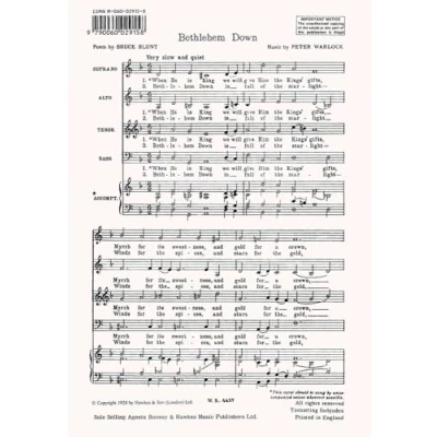 Bethlehem Down: mixed choir (SATB) a cappella. Partition de chœur.
