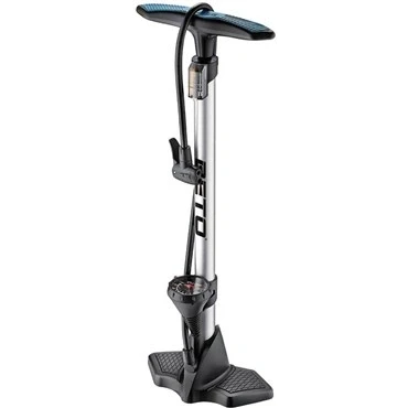 The Beto CMP155AG7 25" Alloy Floor Pump with Gauge is a great value track pump.25” Composite Base/Alloy Barrel Half-Height Gauge Floor PumpRubber-covered composite handleØ32mm alloy barrelPrecision drawn aluminium barrelNeedle set includedHalf height 2.5” spring gaugeStable composite basePatented dual head fits Schrader/PrestaUp to 160 PSILD7 head