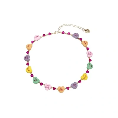 Betsey Johnson Sweetheart Necklace for Women, Playful & Romantic Jewellery, Plated Gold, Pink Glass Colourful Plastic, Collar