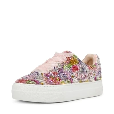 Betsey Johnson Rhinestone Embellished Upper 1" Platform Low Top Sneaker Lace-Up Closure