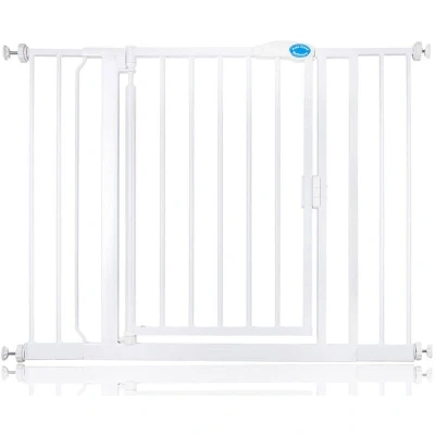 OVER 30 YEARS OF TRUST – Bettacare, has been dedicated to creating safe and secure spaces for children and pets for over three decades. Our commitment to safety and quality ensures that our products are rigorously tested to meet the highest current standards. With a legacy of trust and reliability, Bettacare is a name you can depend on for your family's safety needs. RELIABLE SAFETY - Crafted from durable materials, our products ensure long-lasting protection. Smooth, rounded edges prevent injuries, while finishes are lick-safe and bite-proof for ultimate safety. Our sturdy baby gates feature robust, toddler-climb-proof, and finger-safe construction with a double-lock childproof opening system. Designed to exceed industry safety testing, all our baby gates pass the stringent Safety Barrier Standards EN1930:2011, providing unparalleled security. Bettacare Auto Close Stair Gate, 103.8cm - 110.8cm COLOUR - White - Features a high-quality paint finish that is rigorously tested and certified to be free from harmful chemicals. This ensures a child-safe coating, providing peace of mind while maintaining a durable and attractive appearance. HEIGHT OF GATE - When installed - 75.5cm PRESSURE FIT TECHNOLOGY - Securely mounts the safety gate without the need for drilling, using a pressure-fit system that creates a strong and stable barrier by applying tension between the gate and the walls or door frames. Ideal for easy installation and removal. ONE WAY GATE STOPPER - Gate opens only in your desired direction, a safety feature essential for the stairs and useful around the home. AUTOMATIC CLOSING SYSTEM - The gate closes behind you for peace of mind and eliminates the worry of accidentally leaving the gate open. WIDE WALK-THROUGH - The spacious opening allows for easy passage, making it convenient for adults and older children. EASILY EXTENDABLE - The gate can be effortlessly extended with simple one-piece gate extensions, accommodating various doorway widths. ERGONOMIC HANDLE - Designed for comfortable and easy use, the handle ensures easy one-hand opening and closing. EASE OF INSTALLATION & STYLISH DESIGN - Our gates offer quick, simple installation with detailed instructions for a secure fit. The intuitive one-hand opening mechanism for adults and easy-to-close, secure locking system enhance user-friendliness. Stylish and high-quality designs complement your home interior, making our products highly rated for reliability and ease of use. A comprehensive warranty is included, reflecting our commitment to customer satisfaction and product excellence.