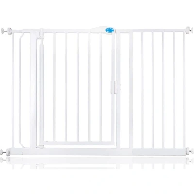 OVER 30 YEARS OF TRUST – Bettacare, has been dedicated to creating safe and secure spaces for children and pets for over three decades. Our commitment to safety and quality ensures that our products are rigorously tested to meet the highest current standards. With a legacy of trust and reliability, Bettacare is a name you can depend on for your family's safety needs. RELIABLE SAFETY - Crafted from durable materials, our products ensure long-lasting protection. Smooth, rounded edges prevent injuries, while finishes are lick-safe and bite-proof for ultimate safety. Our sturdy baby gates feature robust, toddler-climb-proof, and finger-safe construction with a double-lock childproof opening system. Designed to exceed industry safety testing, all our baby gates pass the stringent Safety Barrier Standards EN1930:2011, providing unparalleled security. Bettacare Auto Close Stair Gate, 118.2cm - 125.2cm COLOUR - White - Features a high-quality paint finish that is rigorously tested and certified to be free from harmful chemicals. This ensures a child-safe coating, providing peace of mind while maintaining a durable and attractive appearance. HEIGHT OF GATE - When installed - 75.5cm PRESSURE FIT TECHNOLOGY - Securely mounts the safety gate without the need for drilling, using a pressure-fit system that creates a strong and stable barrier by applying tension between the gate and the walls or door frames. Ideal for easy installation and removal. ONE WAY GATE STOPPER - Gate opens only in your desired direction, a safety feature essential for the stairs and useful around the home. AUTOMATIC CLOSING SYSTEM - The gate closes behind you for peace of mind and eliminates the worry of accidentally leaving the gate open. WIDE WALK-THROUGH - The spacious opening allows for easy passage, making it convenient for adults and older children. EASILY EXTENDABLE - The gate can be effortlessly extended with simple one-piece gate extensions, accommodating various doorway widths. ERGONOMIC HANDLE - Designed for comfortable and easy use, the handle ensures easy one-hand opening and closing. EASE OF INSTALLATION & STYLISH DESIGN - Our gates offer quick, simple installation with detailed instructions for a secure fit. The intuitive one-hand opening mechanism for adults and easy-to-close, secure locking system enhance user-friendliness. Stylish and high-quality designs complement your home interior, making our products highly rated for reliability and ease of use. A comprehensive warranty is included, reflecting our commitment to customer satisfaction and product excellence.