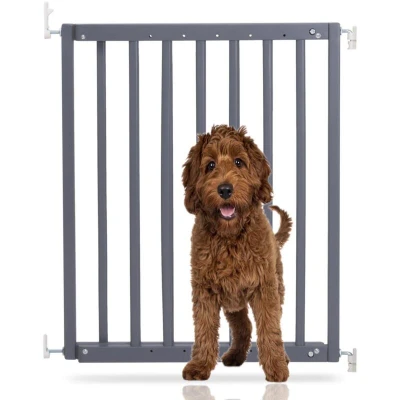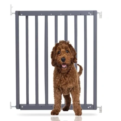 OVER 30 YEARS OF TRUST – Bettacare, has been dedicated to creating safe and secure spaces for children and pets for over three decades. Our commitment to safety and quality ensures that our products are rigorously tested to meet the highest current standards. With a legacy of trust and reliability, Bettacare is a name you can depend on for your family's safety needs. RELIABLE SAFETY - Crafted from durable materials, our products ensure long-lasting protection. Smooth, rounded edges prevent injuries, while finishes are lick-safe and bite-proof for ultimate safety. Our sturdy pet barriers feature robust and strong construction. Designed to prevent your pets from accessing unsafe areas and be simple and reliable for your family to use, all our pet barriers pass our stringent quality control and user testing, providing unparalleled security. Bettacare Chunky Wooden Screw Fit Dog Gate, 63.5cm - 105.5cm COLOUR - Grey Wood - Features a high-quality paint finish that is rigorously tested and certified to be free from harmful chemicals. This ensures a child-safe coating, providing peace of mind while maintaining a durable and attractive appearance. HEIGHT OF GATE - When installed - 75.5cm SCREW FIT (HARDWARE MOUNTED) - Provides a highly secure mounting solution for the safety gate. No trip hazard and wide walkthrough doorway make this gate especially suitable for use at the top of the stairs and ideal for any space for longer-term use and high-traffic areas. Ensures maximum stability and durability. ONE WAY GATE STOPPER - Gate opens only in your desired direction, a safety feature essential for the stairs and useful around the home. NO TRIP GATE - No bottom bar, ensuring no tripping hazards as you walk through the gate. SIMPLE CLOSE - Manual closing system for quick and easy locking. NO FRAME DESIGN - All door and no frame design ensures maximum passage and walkthrough space. OUT OF THE BOX SOLUTION - No additional extensions required to reach your desired width with our out of the box wider gate solution. STAY OPEN ABILITY - The safety gate remains open until you decide to close it. NO HANDLE DESIGN - Seamless latch operation for opening and closing. EASE OF INSTALLATION & STYLISH DESIGN - Our gates offer quick, simple installation with detailed instructions for a secure fit. The intuitive one-hand opening mechanism for adults and easy-to-close, secure locking system enhance user-friendliness. Stylish and high-quality designs complement your home interior, making our products highly rated for reliability and ease of use. A comprehensive warranty is included, reflecting our commitment to customer satisfaction and product excellence.