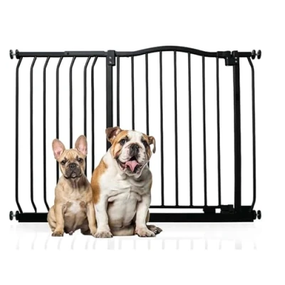 OVER 30 YEARS OF TRUST – Bettacare, has been dedicated to creating safe and secure spaces for children and pets for over three decades. Our commitment to safety and quality ensures that our products are rigorously tested to meet the highest current standards. With a legacy of trust and reliability, Bettacare is a name you can depend on for your family's safety needs. RELIABLE SAFETY - Crafted from durable materials, our products ensure long-lasting protection. Smooth, rounded edges prevent injuries, while finishes are lick-safe and bite-proof for ultimate safety. Our sturdy pet barriers feature robust and strong construction. Designed to prevent your pets from accessing unsafe areas and be simple and reliable for your family to use, all our pet barriers pass our stringent quality control and user testing, providing unparalleled security. Bettacare Curved Top Dog Gate, 107cm - 116cm COLOUR - Black - Features a high-quality paint finish that is rigorously tested and certified to be free from harmful chemicals. This ensures a child-safe coating, providing peace of mind while maintaining a durable and attractive appearance. HEIGHT OF GATE - When installed - 75cm PRESSURE FIT TECHNOLOGY - Securely mounts the safety gate without the need for drilling, using a pressure-fit system that creates a strong and stable barrier by applying tension between the gate and the walls or door frames. Ideal for easy installation and removal. NO GATE RESTRICTOR - Gate opens freely in both directions. OPEN GATE WARNING INDICATOR - Our visual indicator reassures you that the gate is correctly closed and secure, offering you peace of mind. AUTOMATIC CLOSING SYSTEM - The gate closes behind you for peace of mind and eliminates the worry of accidentally leaving the gate open. WIDE WALK-THROUGH - The spacious opening allows for easy passage, making it convenient for adults and older children. EASILY EXTENDABLE - The gate can be effortlessly extended with simple one-piece gate extensions, accommodating various doorway widths. STAY OPEN TECHNOLOGY - The gate can be fixed in the open position when pushed past 90 degrees, staying open until you decide to close it, offering convenience for busy households. ERGONOMIC HANDLE - Designed for comfortable and easy use, the handle ensures easy one-hand opening and closing. EASE OF INSTALLATION & STYLISH DESIGN - Our gates offer quick, simple installation with detailed instructions for a secure fit. The intuitive one-hand opening mechanism for adults and easy-to-close, secure locking system enhance user-friendliness. Stylish and high-quality designs complement your home interior, making our products highly rated for reliability and ease of use. A comprehensive warranty is included, reflecting our commitment to customer satisfaction and product excellence.