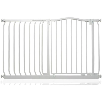 ManoManoGeneral description The Bettacare Matt Finish Curved Top Pet Gate is designed with the latest stair gate technology, providing a stylish and robust solution for pet owners. It is ideal for wider openings and offers a pressure fit installation that requires no screws, allowing for quick and easy setup. Technical specifications Dimensions: 116cm - 125cm width Height of the top curve: 75.6cm from the floor Installation Pressure fitted, no need to screw into walls Can be installed in a few minutes with an easy installation guide Can only be installed in a straight line if purchased alone or with extensions Usage Opens in either direction Features auto close technology to ensure the gate is secured Stay open technology allows the opening panel to remain open beyond ninety degrees Quick check indicator technology alerts if the gate is securely locked or improperly installed