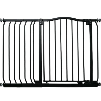 General description The Bettacare Matt Finish Curved Top Pet Gate is designed with the latest stair gate technology, providing a stylish and robust solution for pet owners. It is ideal for wider openings and offers a pressure fit installation, eliminating the need for screws in the walls. Technical specifications Width: 125cm - 134cm Height of the top curve: 75.6cm from the floor Installation Pressure fitted, no screws required Can be installed in a few minutes with an easy installation guide Can only be installed in a straight line, whether purchased alone or with extensions Usage Opens in either direction Features auto close technology to ensure the gate is secured Stay open technology allows the opening panel to remain open beyond ninety degrees for easy access Quick check indicator technology alerts if the gate is securely locked or incorrectly installed
