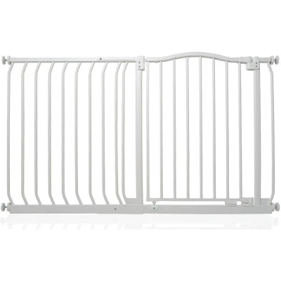 ManoManoGeneral description The Bettacare Matt Finish Curved Top Pet Gate is designed with the latest stair gate technology, providing a stylish and robust solution for pet owners. It is ideal for wider openings and offers a pressure fit installation that requires no screws, making it easy to set up in just a few minutes. Technical specifications Width: 125cm - 134cm Height of the top curve: 75.6cm from the floor Installation Pressure fitted with no need to screw into walls Can be installed in a few minutes using the provided installation guide Can only be installed in a straight line, whether purchased alone or with extensions Usage Opens in either direction Features auto close technology to ensure the gate is secured Stay open technology allows the opening panel to remain open beyond ninety degrees for easy access Quick check indicator technology alerts users if the gate is securely locked or improperly installed