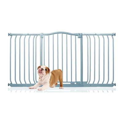 ManoManoGeneral description The Bettacare Matt Finish Curved Top Pet Gate is designed with the latest stair gate technology, providing a stylish and robust solution for pet owners. It is ideal for wider openings and features a pressure fit installation that requires no screws, allowing for quick and easy setup. Technical specifications Width: 143cm - 152cm Height of the top curve: 75.6cm from the floor Installation Pressure fitted, no need to screw into walls Can be installed in a few minutes with an easy installation guide Can only be installed in a straight line, whether purchased alone or with extensions Usage Opens in either direction Features auto close technology to ensure the gate is secured Stay open technology allows the opening panel to remain open beyond ninety degrees for easy access Quick check indicator technology alerts if the gate is securely locked or not installed correctly