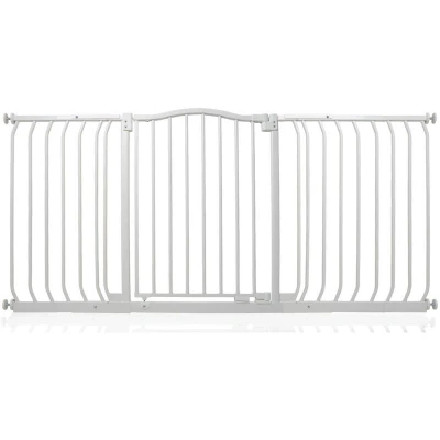 OVER 30 YEARS OF TRUST – Bettacare, has been dedicated to creating safe and secure spaces for children and pets for over three decades. Our commitment to safety and quality ensures that our products are rigorously tested to meet the highest current standards. With a legacy of trust and reliability, Bettacare is a name you can depend on for your family's safety needs. RELIABLE SAFETY - Crafted from durable materials, our products ensure long-lasting protection. Smooth, rounded edges prevent injuries, while finishes are lick-safe and bite-proof for ultimate safety. Our sturdy pet barriers feature robust and strong construction. Designed to prevent your pets from accessing unsafe areas and be simple and reliable for your family to use, all our pet barriers pass our stringent quality control and user testing, providing unparalleled security. Bettacare Curved Top Dog Gate, 152cm - 161cm COLOUR - White - Features a high-quality paint finish that is rigorously tested and certified to be free from harmful chemicals. This ensures a child-safe coating, providing peace of mind while maintaining a durable and attractive appearance. HEIGHT OF GATE - When installed - 75cm PRESSURE FIT TECHNOLOGY - Securely mounts the safety gate without the need for drilling, using a pressure-fit system that creates a strong and stable barrier by applying tension between the gate and the walls or door frames. Ideal for easy installation and removal. NO GATE RESTRICTOR - Gate opens freely in both directions. OPEN GATE WARNING INDICATOR - Our visual indicator reassures you that the gate is correctly closed and secure, offering you peace of mind. AUTOMATIC CLOSING SYSTEM - The gate closes behind you for peace of mind and eliminates the worry of accidentally leaving the gate open. WIDE WALK-THROUGH - The spacious opening allows for easy passage, making it convenient for adults and older children. EASILY EXTENDABLE - The gate can be effortlessly extended with simple one-piece gate extensions, accommodating various doorway widths. STAY OPEN TECHNOLOGY - The gate can be fixed in the open position when pushed past 90 degrees, staying open until you decide to close it, offering convenience for busy households. ERGONOMIC HANDLE - Designed for comfortable and easy use, the handle ensures easy one-hand opening and closing. EASE OF INSTALLATION & STYLISH DESIGN - Our gates offer quick, simple installation with detailed instructions for a secure fit. The intuitive one-hand opening mechanism for adults and easy-to-close, secure locking system enhance user-friendliness. Stylish and high-quality designs complement your home interior, making our products highly rated for reliability and ease of use. A comprehensive warranty is included, reflecting our commitment to customer satisfaction and product excellence.