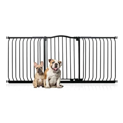 ManoManoGeneral description The Bettacare Matt Finish Curved Top Pet Gate is designed with the latest stair gate technology, providing a stylish and robust solution for pet owners. It is ideal for wider openings and offers a pressure-fit installation that requires no screws, making it easy to set up in just a few minutes. Technical specifications Width: 179cm - 188cm Height of the top curve: 75.6cm from the floor Installation Pressure fitted with no need to screw into walls Easy installation guide included Can only be installed in a straight line Usage Opens in either direction Features auto close technology to ensure the gate is secured Stay open technology allows the opening panel to remain open beyond ninety degrees Quick check indicator technology alerts if the gate is securely locked or incorrectly installed