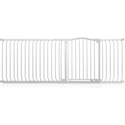 ManoManoGeneral description The Bettacare Matt Finish Curved Top Pet Gate is designed with the latest stair gate technology, providing a stylish and robust solution for pet owners. It is ideal for wider openings and offers a pressure fit installation that requires no screws, allowing for quick and easy setup. Technical specifications Width: 198cm - 207cm Height of the top curve: 75.6cm from the floor Installation Pressure fitted with no need to screw into walls Can be installed in a few minutes with an easy installation guide Can only be installed in a straight line if purchased alone or with extensions Usage Opens in either direction Features auto close technology to ensure the gate is secured Stay open technology allows the opening panel to remain open beyond ninety degrees Quick check indicator technology alerts if the gate is securely locked or not installed correctly