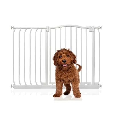 ManoManoGeneral description The Bettacare Matt Finish Curved Top Pet Gate is designed with the latest stair gate technology, providing a stylish and robust solution for pet owners. It is ideal for creating a barrier for dogs and puppies, ensuring safety and convenience in your home. Technical specifications Height of the curved top: 75.6 cm from the floor Width: Adjustable between 98 cm and 107 cm Installation Pressure fitted, requiring no screws into walls Can be installed in just a few minutes with an easy installation guide Can only be installed in a straight line, whether purchased alone or with extensions Usage Opens in either direction for convenience Features auto close technology to ensure the gate is secured Stay open technology allows the opening panel to remain open beyond ninety degrees for easy passage when not in use Quick check indicator technology alerts if the gate is securely locked or improperly installed