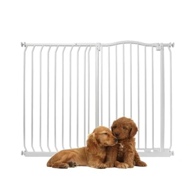 ManoManoGeneral description The Bettacare Extra Tall Matt Finish Curved Top Pet Gate is designed for pet owners seeking a robust and stylish solution. With its extra height and width, this gate incorporates the latest stair gate technology, making it ideal for keeping pets secure. Technical specifications Height: 100cm Width: Adjustable between 125cm and 134cm Installation Pressure fitted, requiring no screws into walls Easy installation guide included Can only be installed in a straight line Usage Opens in either direction Features auto close technology for secure closure Stay open technology allows the gate to remain open beyond ninety degrees Quick check indicator alerts if the gate is securely locked or incorrectly installed