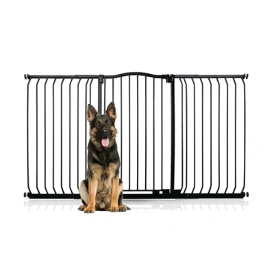 OVER 30 YEARS OF TRUST – Bettacare, has been dedicated to creating safe and secure spaces for children and pets for over three decades. Our commitment to safety and quality ensures that our products are rigorously tested to meet the highest current standards. With a legacy of trust and reliability, Bettacare is a name you can depend on for your family's safety needs. RELIABLE SAFETY - Crafted from durable materials, our products ensure long-lasting protection. Smooth, rounded edges prevent injuries, while finishes are lick-safe and bite-proof for ultimate safety. Our sturdy pet barriers feature robust and strong construction. Designed to prevent your pets from accessing unsafe areas and be simple and reliable for your family to use, all our pet barriers pass our stringent quality control and user testing, providing unparalleled security. Bettacare Extra Tall Curved Top Dog Gate, 161cm - 170cm COLOUR - Black - Features a high-quality paint finish that is rigorously tested and certified to be free from harmful chemicals. This ensures a child-safe coating, providing peace of mind while maintaining a durable and attractive appearance. HEIGHT OF GATE - When installed - 100cm PRESSURE FIT TECHNOLOGY - Securely mounts the safety gate without the need for drilling, using a pressure-fit system that creates a strong and stable barrier by applying tension between the gate and the walls or door frames. Ideal for easy installation and removal. NO GATE RESTRICTOR - Gate opens freely in both directions. OPEN GATE WARNING INDICATOR - Our visual indicator reassures you that the gate is correctly closed and secure, offering you peace of mind. AUTOMATIC CLOSING SYSTEM - The gate closes behind you for peace of mind and eliminates the worry of accidentally leaving the gate open. WIDE WALK-THROUGH - The spacious opening allows for easy passage, making it convenient for adults and older children. EASILY EXTENDABLE - The gate can be effortlessly extended with simple one-piece gate extensions, accommodating various doorway widths. STAY OPEN TECHNOLOGY - The gate can be fixed in the open position when pushed past 90 degrees, staying open until you decide to close it, offering convenience for busy households. ERGONOMIC HANDLE - Designed for comfortable and easy use, the handle ensures easy one-hand opening and closing. EXTRA TALL - Designed to be exceptionally tall, sturdy, and secure, making it ideal for both children and pets. Meets EN1930:2011 safety standards. EASE OF INSTALLATION & STYLISH DESIGN - Our gates offer quick, simple installation with detailed instructions for a secure fit. The intuitive one-hand opening mechanism for adults and easy-to-close, secure locking system enhance user-friendliness. Stylish and high-quality designs complement your home interior, making our products highly rated for reliability and ease of use. A comprehensive warranty is included, reflecting our commitment to customer satisfaction and product excellence.