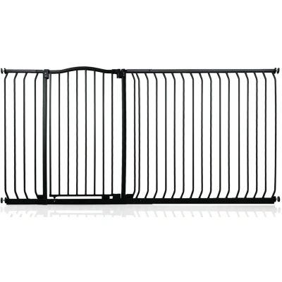 General description The Bettacare Extra Tall Matt Finish Curved Top Pet Gate is designed with the latest stair gate technology, providing a robust and stylish solution for pet owners. With a height of 100cm and a width adjustable between 189cm and 198cm, this gate is perfect for keeping your pets safe while maintaining an elegant look. Technical specifications Height: 100cm Width: Adjustable from 189cm to 198cm Finish: Matt Black Installation Pressure fitted, requiring no screws into the walls Can be installed in just a few minutes with an easy installation guide Note: Can only be installed in a straight line Usage Opens in either direction Features auto close technology to ensure the gate is secured Stay open technology allows the opening panel to remain open beyond ninety degrees for easy access Quick check indicator technology alerts if the gate is securely locked or improperly installed