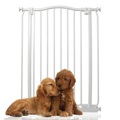 ManoManoGeneral description The Bettacare Extra Tall Matt Finish Curved Top Pet Gate is designed with the latest stair gate technology, providing a robust and stylish solution for pet owners. With a height of 100cm, it is perfect for keeping pets secure while allowing easy access for humans. Technical specifications Height: 100cm Width: Adjustable between 71cm - 80cm Finish: Matt White Installation Pressure fitted, no need to screw into walls Can be installed in a few minutes with an easy installation guide Can only be installed in a straight line Usage Opens in either direction Features auto close technology for secure closure Stay open technology allows the gate to remain open beyond ninety degrees Quick check indicator technology alerts if the gate is securely locked or incorrectly installed