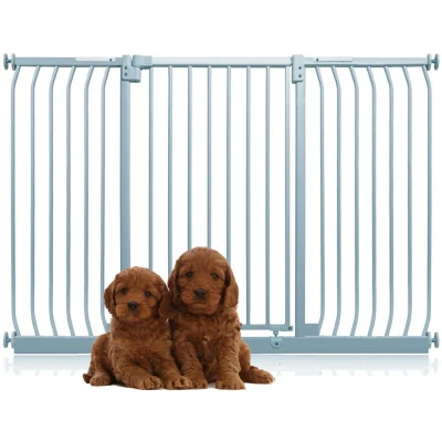 OVER 30 YEARS OF TRUST – Bettacare, has been dedicated to creating safe and secure spaces for children and pets for over three decades. Our commitment to safety and quality ensures that our products are rigorously tested to meet the highest current standards. With a legacy of trust and reliability, Bettacare is a name you can depend on for your family's safety needs. RELIABLE SAFETY - Crafted from durable materials, our products ensure long-lasting protection. Smooth, rounded edges prevent injuries, while finishes are lick-safe and bite-proof for ultimate safety. Our sturdy pet barriers feature robust and strong construction. Designed to prevent your pets from accessing unsafe areas and be simple and reliable for your family to use, all our pet barriers pass our stringent quality control and user testing, providing unparalleled security. Bettacare Extra Tall Elite Dog Gate, 152cm - 161cm COLOUR - Grey - Features a high-quality paint finish that is rigorously tested and certified to be free from harmful chemicals. This ensures a child-safe coating, providing peace of mind while maintaining a durable and attractive appearance. HEIGHT OF GATE - When installed - 96.8cm PRESSURE FIT TECHNOLOGY - Securely mounts the safety gate without the need for drilling, using a pressure-fit system that creates a strong and stable barrier by applying tension between the gate and the walls or door frames. Ideal for easy installation and removal. ALL OPTIONS GATE STOPPER - Customize your gate to open in one direction or both, providing safety and flexibility to suit your specific needs. OPEN GATE WARNING INDICATOR - Our visual indicator reassures you that the gate is correctly closed and secure, offering you peace of mind. AUTOMATIC CLOSING SYSTEM - The gate closes behind you for peace of mind and eliminates the worry of accidentally leaving the gate open. WIDE WALK-THROUGH - The spacious opening allows for easy passage, making it convenient for adults and older children. EASILY EXTENDABLE - The gate can be effortlessly extended with simple one-piece gate extensions, accommodating various doorway widths. STAY OPEN TECHNOLOGY - The gate can be fixed in the open position when pushed past 90 degrees, staying open until you decide to close it, offering convenience for busy households. ERGONOMIC HANDLE - Designed for comfortable and easy use, the handle ensures easy one-hand opening and closing. EXTRA TALL - Designed to be exceptionally tall, sturdy, and secure, making it ideal for both children and pets. Meets EN1930:2011 safety standards. EASE OF INSTALLATION & STYLISH DESIGN - Our gates offer quick, simple installation with detailed instructions for a secure fit. The intuitive one-hand opening mechanism for adults and easy-to-close, secure locking system enhance user-friendliness. Stylish and high-quality designs complement your home interior, making our products highly rated for reliability and ease of use. A comprehensive warranty is included, reflecting our commitment to customer satisfaction and product excellence.