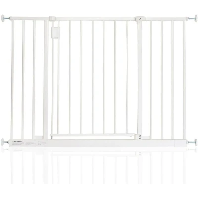 General description The Bettacare Extra Wide Hallway Pet Gate is designed for wider hallway or stairway spaces, providing a secure barrier to keep your pets safe and out of trouble. It can be installed in minutes without drilling, making it ideal for rental properties. Technical specifications Width: 97cm - 103cm (can be extended to a maximum of 152.6cm with additional extensions) Height: 73cm Color options: Black, Grey, White Installation Pressure fit installation, no drilling required Simple to install and remove without damaging walls or door frames Usage Features a double locking mechanism for added security Single-handed operation for ease of use Push to shut feature for convenience Other information Passed the EN1930:2011 Safety Standard, suitable for families with small children and pets Underwent rigorous durability and impact testing