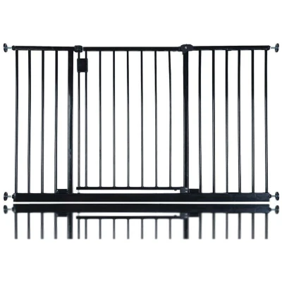 ManoManoGeneral description The Bettacare Extra Wide Hallway Pet Gate is designed for wider hallway or stairway spaces, providing a secure barrier to keep your pets safe and out of trouble. It can be installed in minutes without drilling holes, making it ideal for rental properties. The gate features a sleek black finish and is also available in grey and white. Technical specifications Width: 97cm - 103cm (can be extended to a maximum of 152.6cm with additional extensions) Height: 73cm Type: Pressure fit Color: Black (also available in grey and white) Installation Pressure fitted for easy installation and removal No permanent damage to walls or door frames Usage Features a double locking mechanism for added security Single-handed operation for ease of use Push to shut feature for convenience Other information Passed the EN1930:2011 Safety Standard, suitable for families with small children and pets Underwent rigorous durability and impact testing