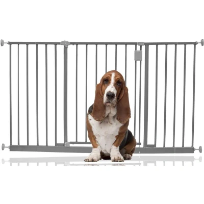 Bettacare Extra Wide Hallway Dog Gate, 128cm 134cm, Grey, Pressure Fit Pet Puppy Safety Barrier for Hallways and Spaces, Easy Installation