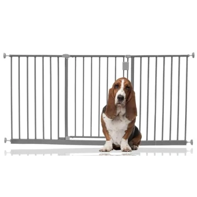 Bettacare Extra Wide Hallway Dog Gate, 147cm 152cm, Grey, Pressure Fit Pet Puppy Safety Barrier for Hallways and Spaces, Easy Installation