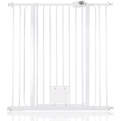 Bettacare Pet Gate with Lockable Cat Flap, 100.8cm 108.4cm, White, 104cm in Height, Extra Tall Dog Safety Barrier Easy Installation