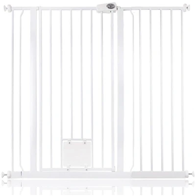 Bettacare Pet Gate with Lockable Cat Flap, 113.8cm 121.4cm, White, 104cm in Height, Extra Tall Dog Safety Barrier Easy Installation