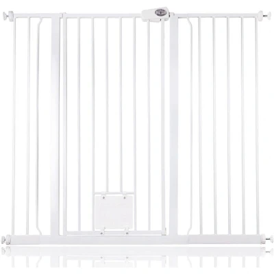 Bettacare Pet Gate with Lockable Cat Flap, 120.3cm 127.9cm, White, 104cm in Height, Extra Tall Dog Safety Barrier Easy Installation