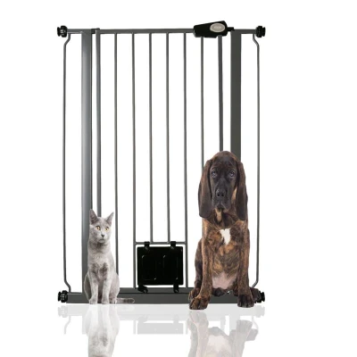 Bettacare Pet Gate with Lockable Cat Flap, 75cm 84cm, Slate Grey, 104cm in Height, Extra Tall Dog Safety Barrier Easy Installation