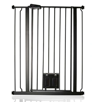 Bettacare Pet Gate with Lockable Cat Flap, 81.4cm 89cm, Black, 104cm in Height, Extra Tall Dog Safety Barrier Easy Installation